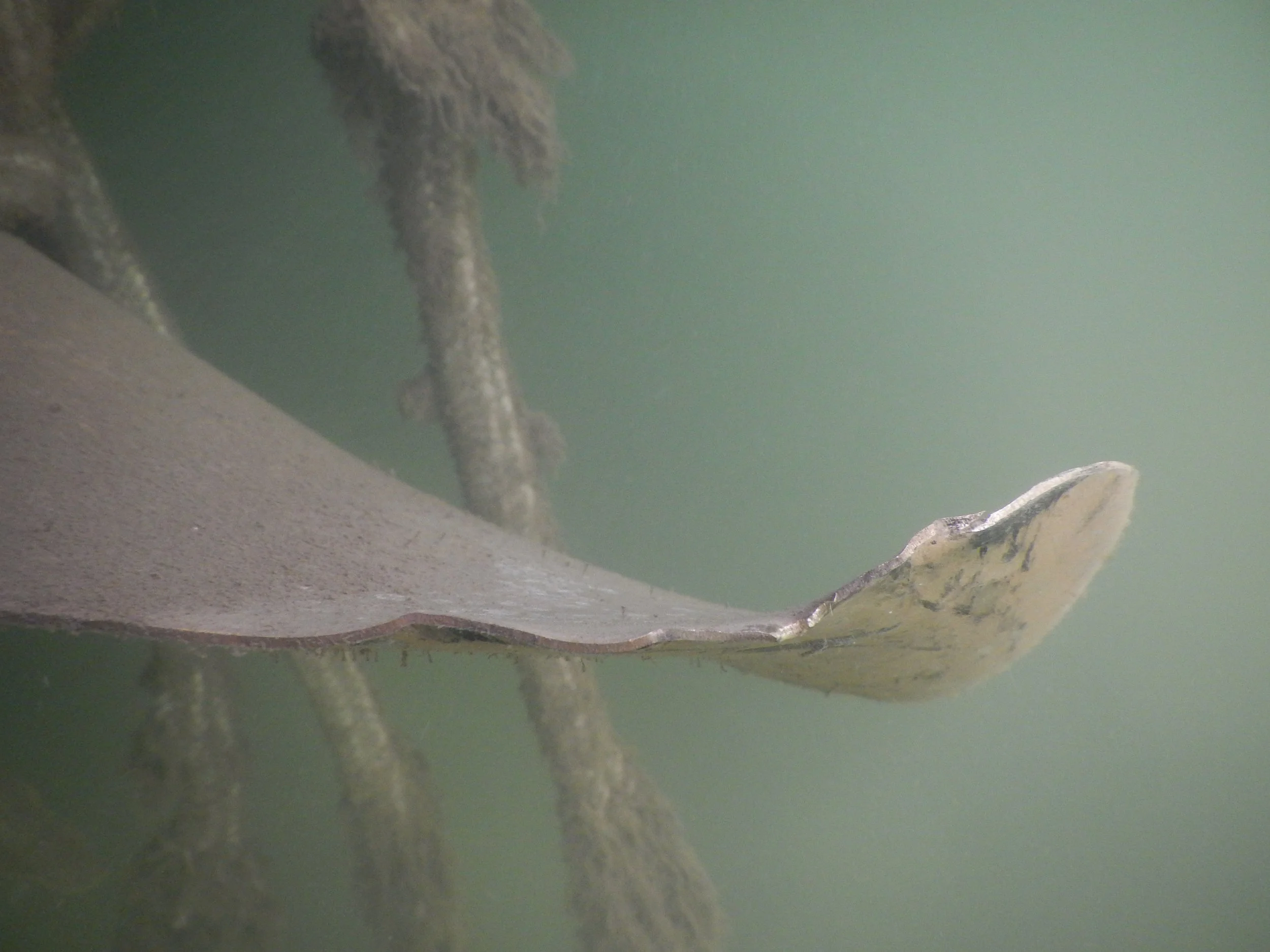 Saltwater wears down propellers over time. Corrosion weakens the blades and lowers efficiency. When corrosion is advanced, replacement is the best option.Loose Key